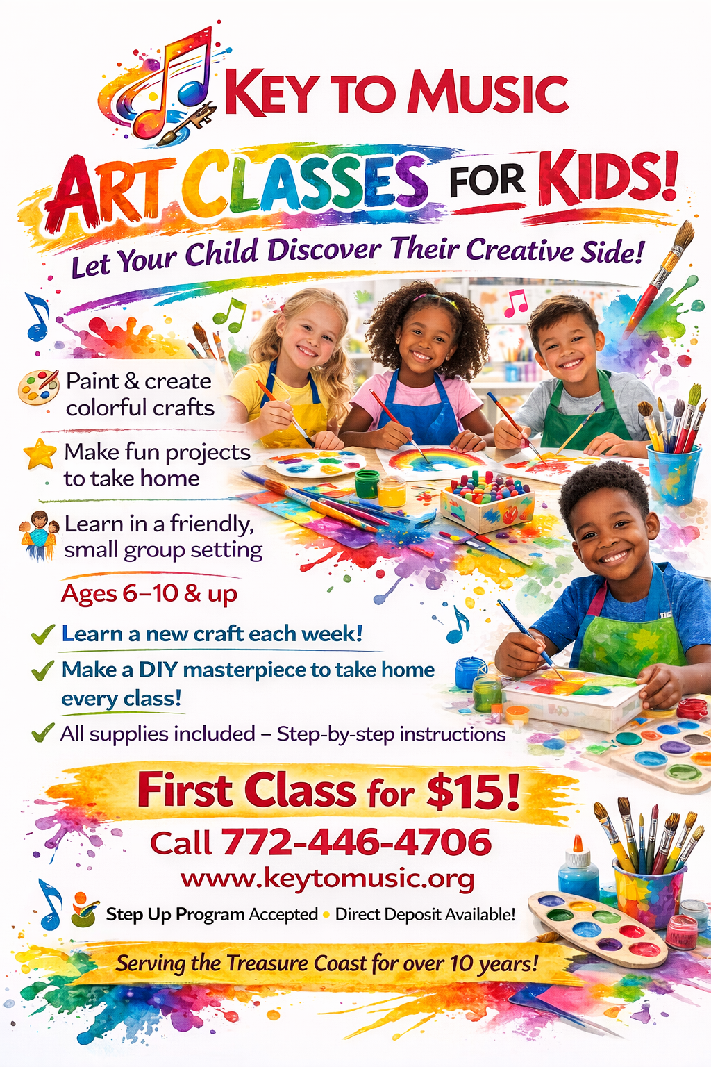 Key To Music has been proudly serving the Treasure Coast for over 10 years, offering high-quality music and now art programs for children of all ages.